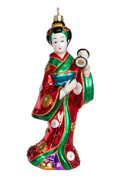 1047 Гейша в кимоно (стекло) 7х6,5х18см (отдел елочная игрушка, подвеска на елку)