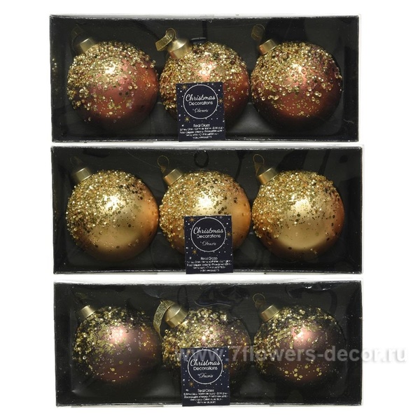 Набор елочных игрушек «Шар» стекло 8см 3шт Коричневый-серый 030200