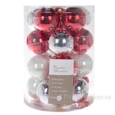 Набор елочных украшений «Шар» (стекло) 6см 20шт Белый, красный, серебро 142168
