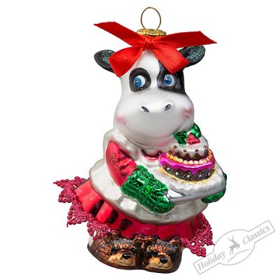 204922-86 Корова «Кулинарный шедевр» (стекло) 7,5х6,5х11 см п/у (отдел елочная игрушка, подвеска на елку)