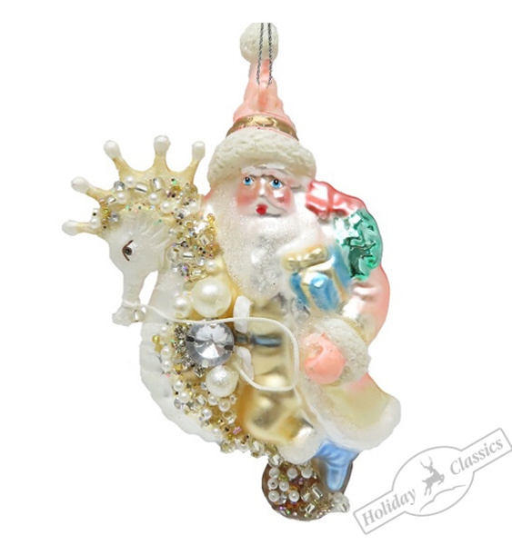 243204 Морской Санта (стекло) 7,5х6,5х14см (отдел елочная игрушка, подвеска на елку)