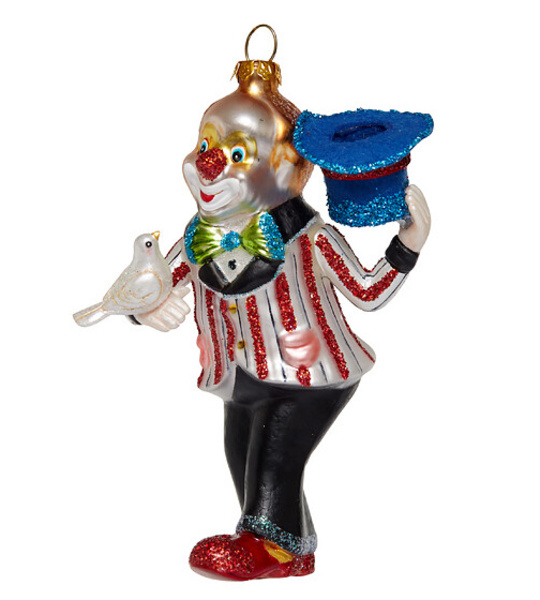 23023-2 Клоун с голубем (стекло) 8х7х13,5см 231370 (отдел елочная игрушка, подвеска на елку)
