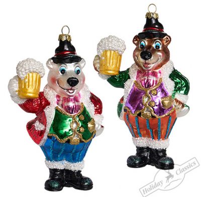 243961 Медведь «Пивной гурман» асс. из 2-х (стекло) 9,5х7х15,5см (отдел елочная игрушка, подвеска на елку)