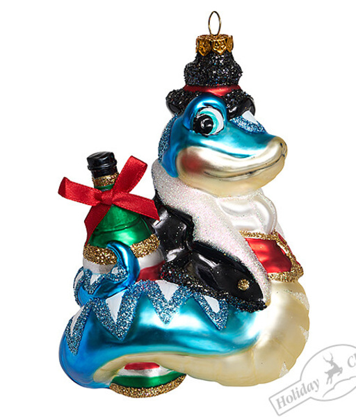 Елочная игрушка 243957 Змея «Джентльмен с вином» (стекло) 9х6,5х13,5 см (отдел елочная игрушка, подвеска на елку)