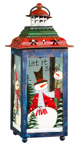 68295 Фонарь рождественский синий с красной крышей высокий (металл/стекло) 12,7х12,7х29.5см (отдел елочная игрушка, подвеска на елку)