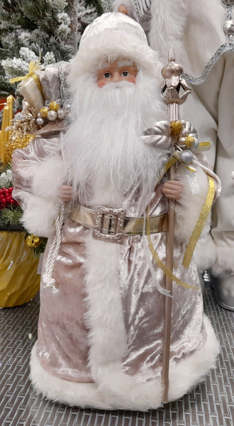 Дед Мороз в кремовой бархатной шубе 45 см 4595 (отдел елочная игрушка, подвеска на елку)