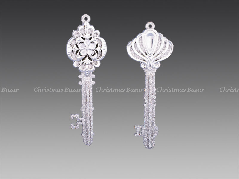 16099S Ключ «Барокко» серебр искристый с графит узорами и стразами, асс. из 2-х, 4х13 см DM (отдел елочная игрушка, подвеска на елку)
