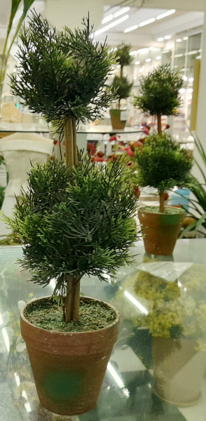 Кипарисовик искусственный 45 см двойной шар в кашпо 004