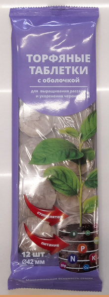 Торфяные таблетки с оболочкой 42 мм, 12 штук (отдел земля, грунт, почвогрунт, удобрение)