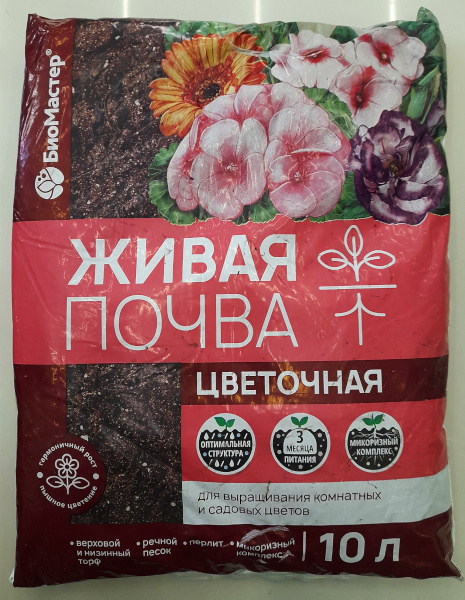 Живая почва, цветочная 10 л БиоМастер 777889 (отдел земля, грунт, почвогрунт, удобрение)