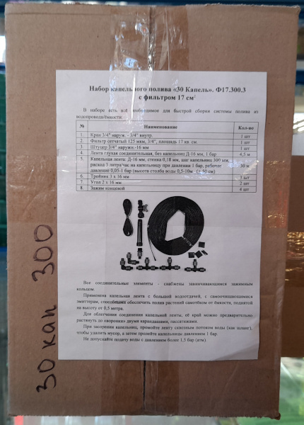 Набор (комплект) система капельного полива «30 капель» Ф17.300.3 с фильтром 17 кв. см (БП-00001361)