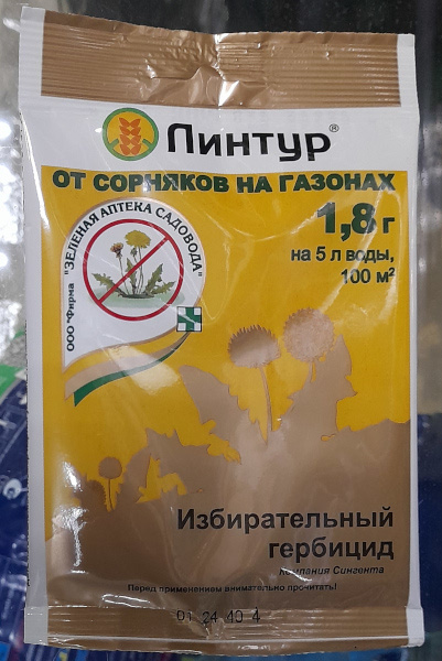 Средство от сорняков на газонах Линтур 1,8 г (на 5 л воды на 100 м2), избирательный гербицид, 000757