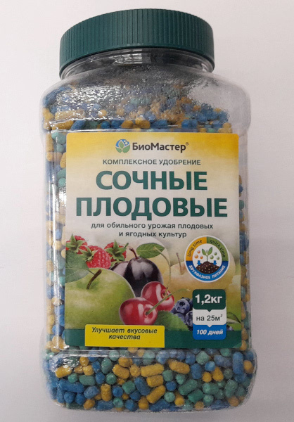 Удобрение для обильного урожая плодовых и ягодных культур БиоМастер Сочные плодовые, комплексное минеральное удобрение 1,2 кг (отдел земля, грунт, почвогрунт, удобрение)