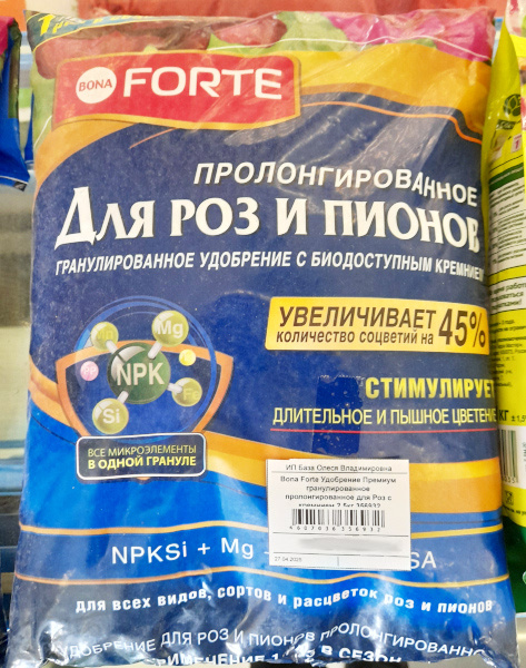 Удобрение для роз и пионов Премиум гранулированное пролонгированное с кремнием Bona Forte 2,5кг 356932