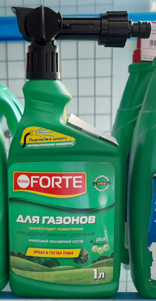 Удобрения для газонов Bona Forte, эжектор 1 л, жидкое минеральное удобрение