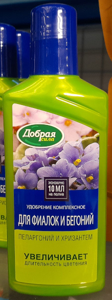 Удобрение для фиалок, бегоний, пеларгоний, хризантем Добрая сила (жидкое органо-минеральное) 250 мл (увеличивает длительность цветения) 354587