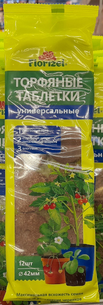 Торфяные таблетки Florizel универсальные 12 шт. 42 мм (отдел земля, грунт, почвогрунт, удобрение)