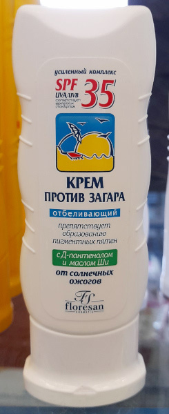 Крем против загара SPF 35 отбеливающий, 60 мл, Floresan, c Д-пантенолом и маслом Ши, Ф 100