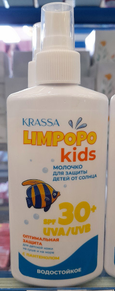 Молочко Limpopo Kids для защиты детей от солнца, детское, защитное, 150 мл, SPF 30, KRASSA