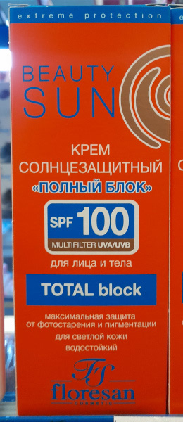 Крем Beauty Sun солнцезащитный Полный блок фактор SPF 100 75 мл, Ф 285, 08693
