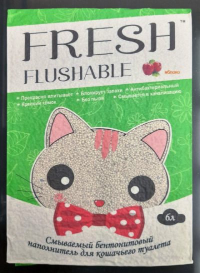 Смываемый бентонитовый наполнитель для кошачьего туалета Fresh Flushable Свежесть, аромат яблоко, 6 л, 278092