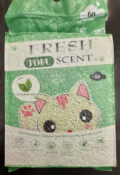 Наполнитель растительный Fresh Scent Tofu, 6 л, Зеленый чай, комкующийся, 279150