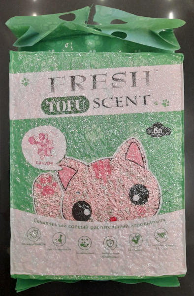 Наполнитель растительный Fresh Scent Tofu, 6 л, Сакура, комкующийся, 279167