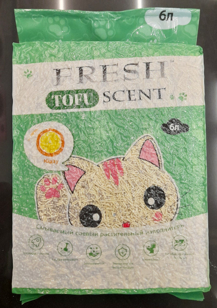 Наполнитель растительный Fresh Scent Tofu, 6 л, Юдзу, комкующийся, 279136