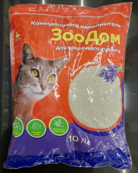 Комкующийся наполнитель для кошачьего туалета ЗооДом, 10 л, аромат лаванда