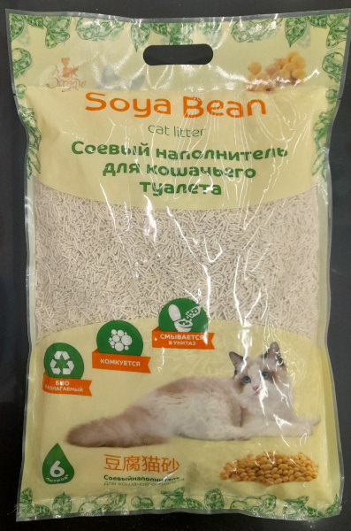 Наполнитель для кошачьего туалета ЗооДом Soya Bean, 6 л, 2,5 кг, без запаха, соевый, 379799, 660925