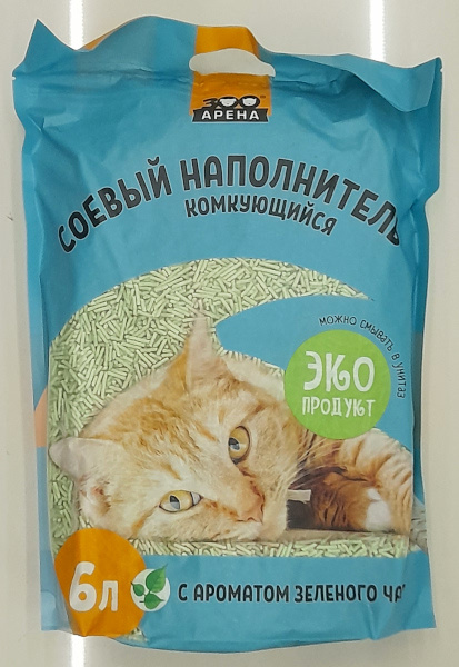 Наполнитель соевый комкующийся ЗооАрена, 6 л, с ароматом зеленого чая, 003823