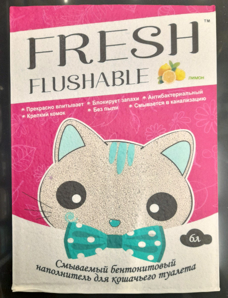 Смываемый бентонитовый наполнитель для кошачьего туалета Fresh Flushable Свежесть, аромат лимон, 6 л, 278085