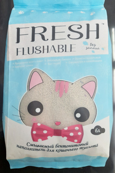 Смываемый бентонитовый наполнитель для кошачьего туалета Fresh Flushable Свежесть, без запаха, 6 л