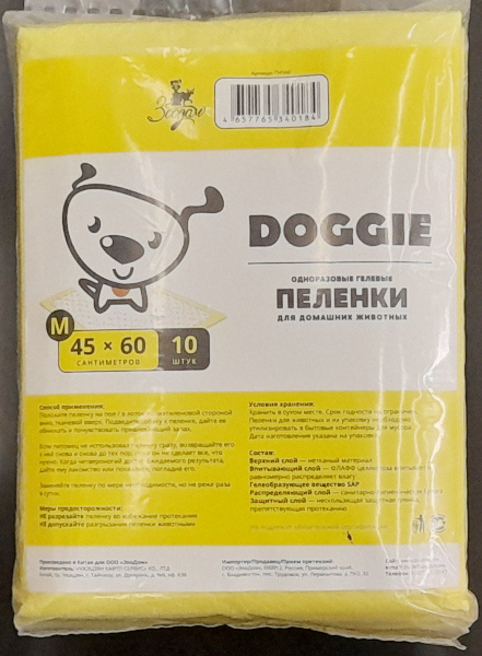 Пеленки гелевые для домашних животных, собак ЗооДом DOGGIE размер M, 45*60 см, 10 шт. в упаковке