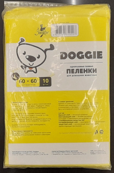 Пеленки гелевые для домашних животных, собак ЗооДом DOGGIE размер L, 60*60 см, 10 шт. в упаковке