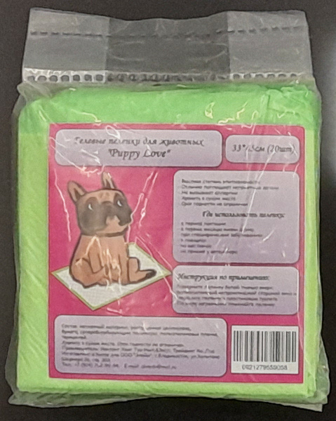 Пеленки гелевые для животных, собак Puppy Love 33*45 см, 20 шт.
