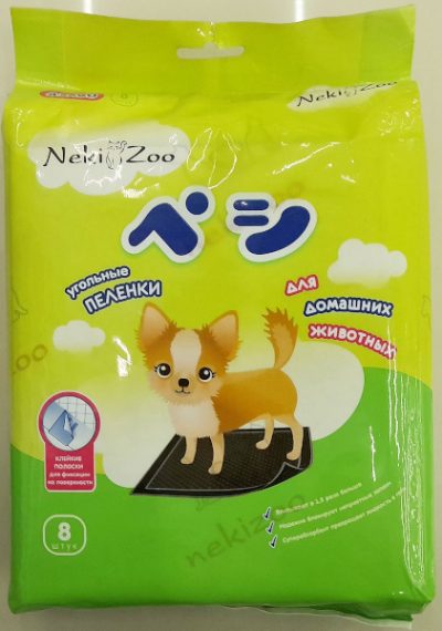 Пеленки угольные для домашних животных, собак NekiZoo (от Maneki, Япония), размер 45*60 см, 8 шт., с клейкими полосками для фиксации на поверхности