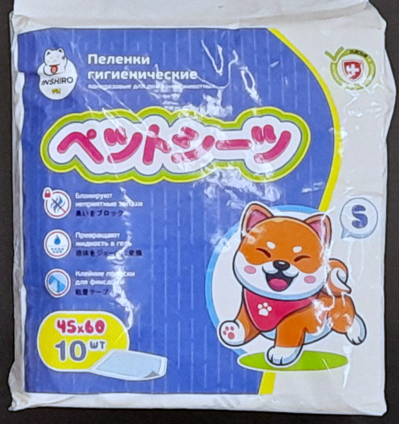 Пеленки для домашних животных, собак Inshiro Pet одноразовые, 45*60 см, размер S, 10 шт., PL976 120976