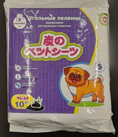 Пеленки для домашних животных, собак Inshiro Pet одноразовые 45*60 см, размер S, 10 шт., угольные, PL983 120983