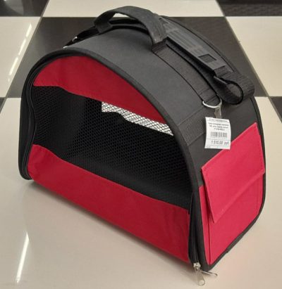 Сумка переноска для кошек и собак полукруглая с карманами ПВХ, сетка, пластик, красная, 37*18*25 см, 7805329