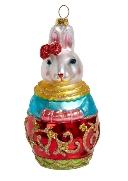 03960 Кролик Матрешка с бантиком (стекло) 7х7х14,5см 039600 (отдел елочная игрушка, подвеска на елку)