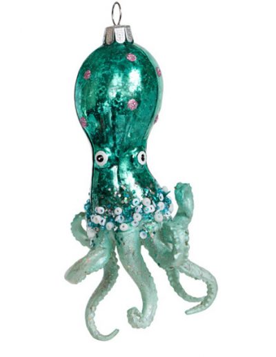 1004 Осьминог "Изумрудный остров" винтаж (стекло) 8,5х7,5х13,5см (отдел елочная игрушка, подвеска на елку)
