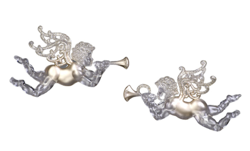 Количество товара 0908 Херувим жемчужно-золотой с трубой асс. из 2-х, 12х10см 100860 (отдел елочная игрушка, подвеска на елку)