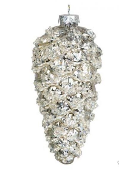 1043 Шишка серебряная винтажная (стекло) 6,2х13,3см (отдел елочная игрушка, подвеска на елку)