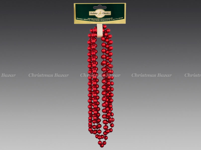 1002R Бусы Жемчужная нить красные 10мм*2,7м NG1002R (отдел елочная игрушка, подвеска на елку)