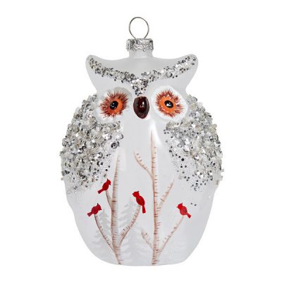 038 Сова Полярная (стекло) 8х7,5х12,5см 232628 (отдел елочная игрушка, подвеска на елку)
