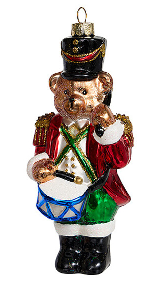 1082 Медведь-барабанщик Гвардейского полка (стекло) 6,5х5,5х14,5см (отдел елочная игрушка, подвеска на елку)