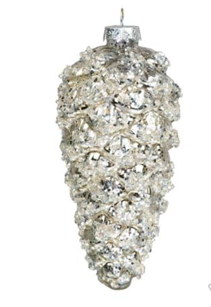 Количество товара 1043 Шишка серебряная винтажная (стекло) 6,2х13,3см (отдел елочная игрушка, подвеска на елку)