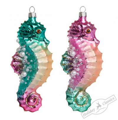 1008 Морской конек японский розовый, асс. из 2-х (стекло) 5,5х3,5х14см (отдел елочная игрушка, подвеска на елку)