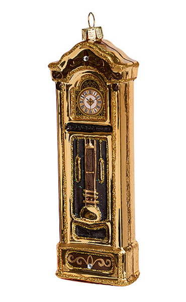 1116 Часы с маятником золотые (стекло) 5х2,5х15,5см (отдел елочная игрушка, подвеска на елку)